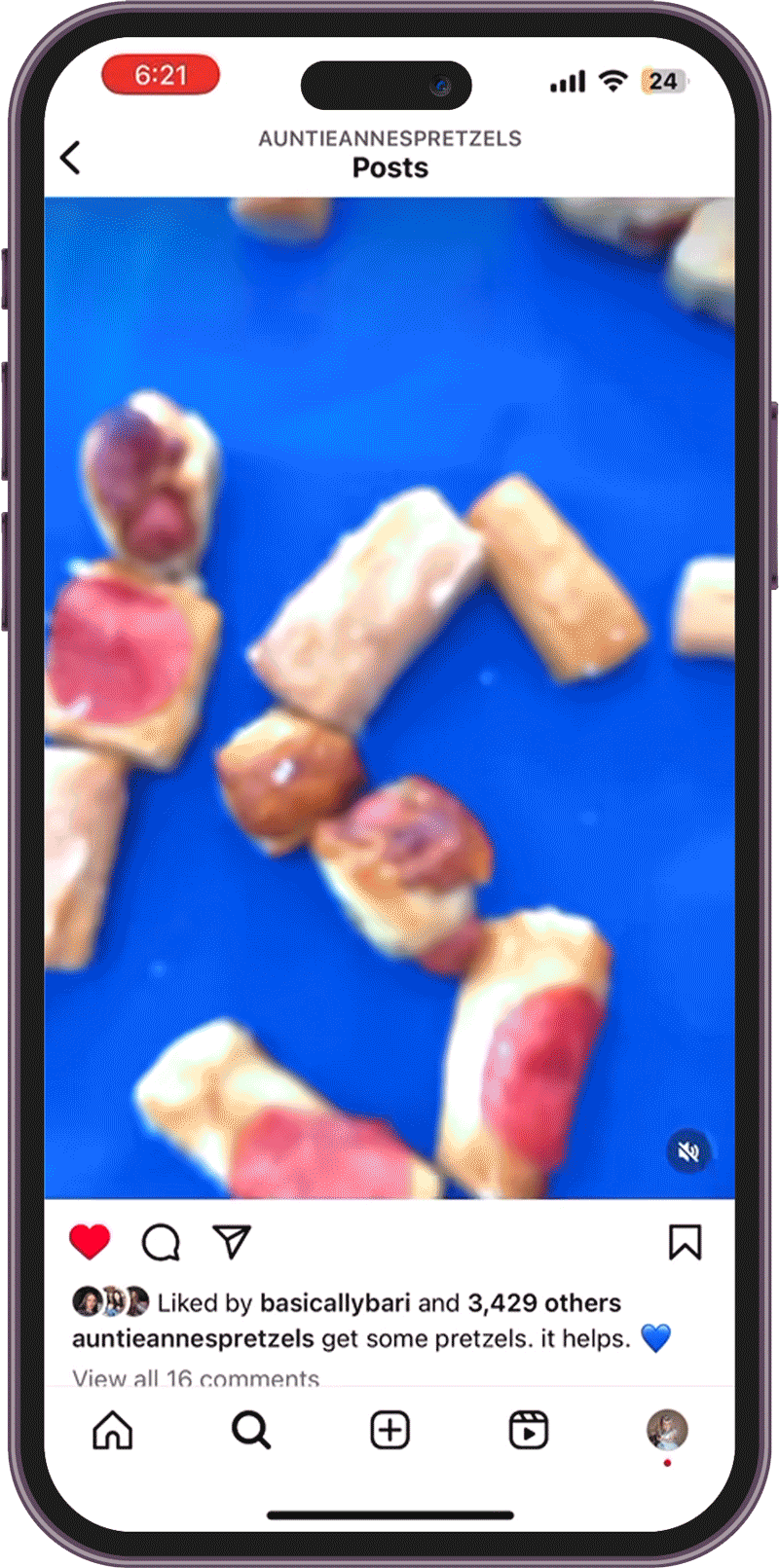 Auntie Anne’s social leans into human truths to make the brand more relatable and relevant, thereby increasing engagement and shareability.