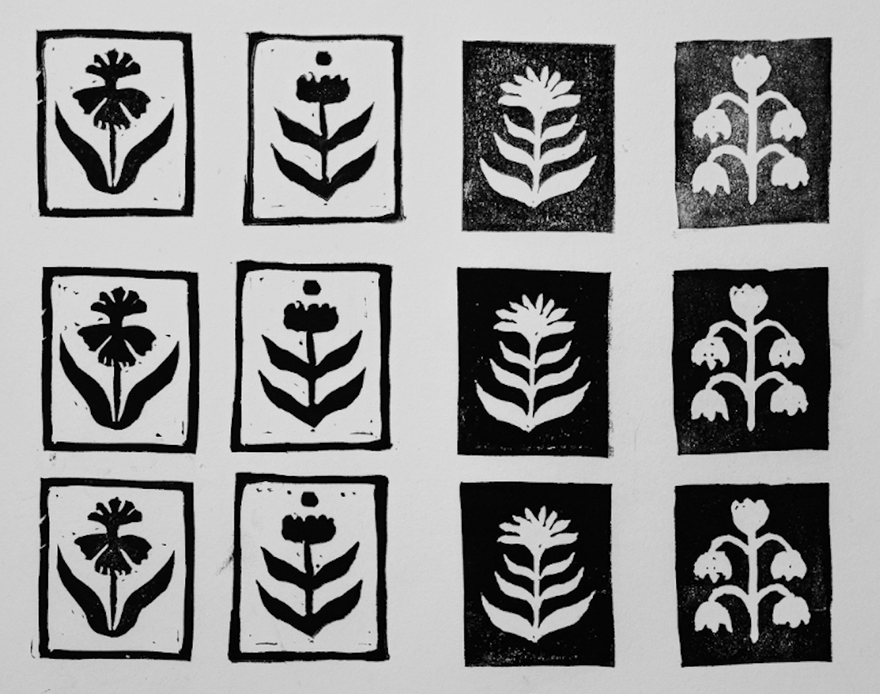 The checkered flower stamp pattern was created by linoleum printing the designs and scanning them in to vectorize them. The slight imperfections of the linoleum printing technique add more character and a hand-made, organic feeling to the packaging design.