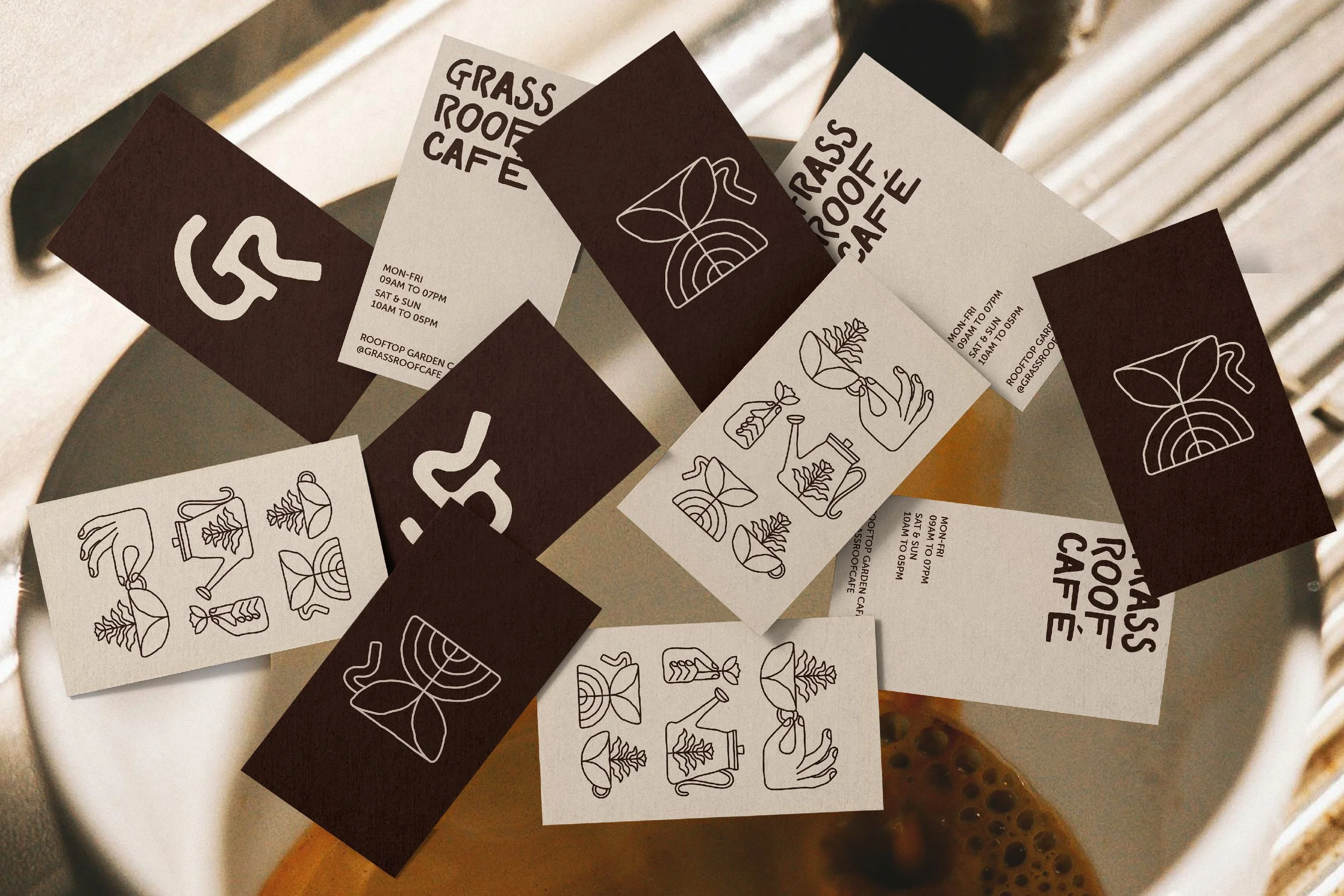 Grass Roof Café, a play on the word “grassroots,” is a conceptual rooftop garden café designed to promote environmental stewardship and community through coffee. The challenge was to communicate the brand’s purpose-driven mission and values through a bold, fun, and timeless visual identity.